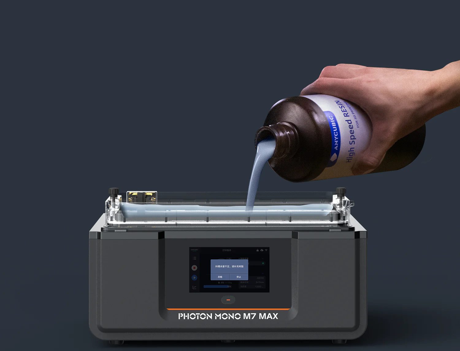 自动跟踪材料槽中的树脂量并提醒用户重新填充。