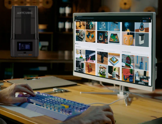 - 云打印:使用 Anycubic 应用程序访问 Makeronline 模型库,并从智能手机启动云打印,云库中提供优化的树脂打印参数。